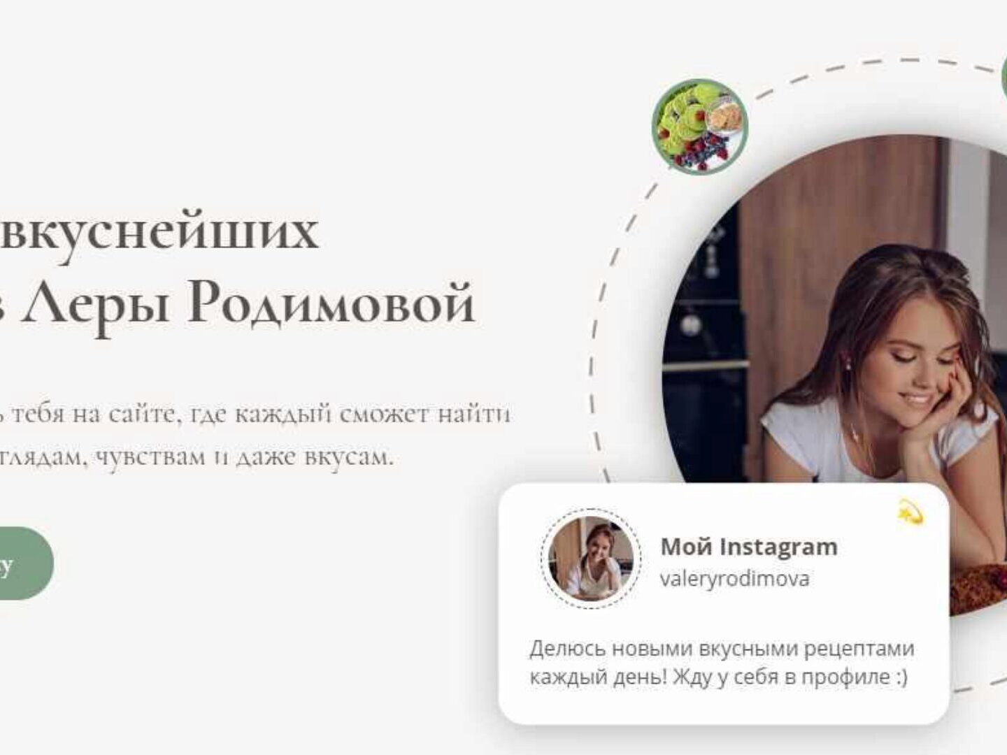 Думается мне, что если ты находишься на этой странице, то прежде мы уже были отлично знакомы. Меня зовут Лера Родимова и у меня есть огромное увлечение — готовить для себя и своих близких!
