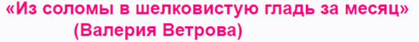 Валерия Ветрова «Из соломы в шелковистую гладь за месяц»