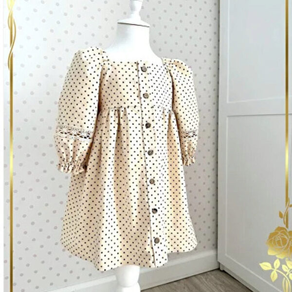 Описание: милые детали, рукава-фонарики, отложной воротничок, украшенный кружевом, удобная завышенная талия и шитьё по низу - это очаровательное платье наверняка приведет в восторг любую девочку. Выкройки к данному платью вы можете приобрести в трех вариантах. Стоимость: размерный ряд 80-116 300