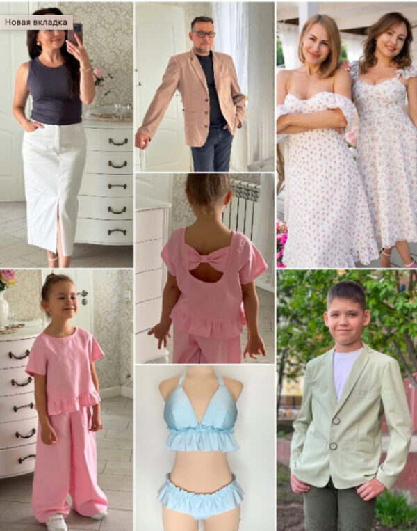 Основная программа: • Женская классическая рубашка • Женское платье-рубашка • Штанишки для малышей • Худи для мужчин и детей • Детская парка • Женское трикотажное платье • Жилеты для всей семьи Дополнительные уроки: •Панамка стеганная •Сумка стеганная •Кожанный корсет Приглашенные спикеры: •Шамаева