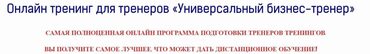 Воспользуйтесь отличной возможностью не выходя из дома освоить технологию подготовки успешных тренингов!