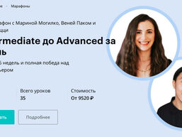Этот марафон — самый полный курс по грамматике и лексике для уровня Intermediate, который позволит тебе сделать рывок из среднего уровня и перейти на Advanced. Тебя ждёт 60-дневная интенсивная углублённая программа, на которой прокачаем твой уровень, научим грамотно и свободно говорить как носитель