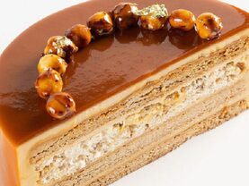 и блестящая карамельная глазурь. Нежный заварной крем с карамельными нотками