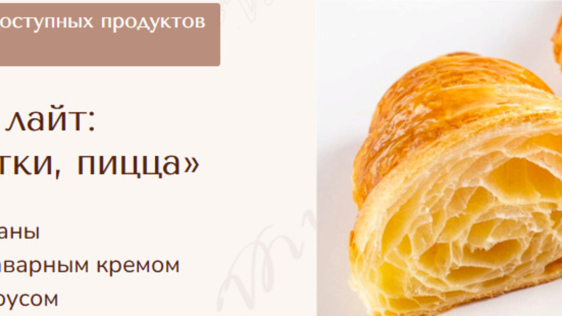 Мы создали для Вас упрощенный курс по круассанам, который реализуется как на отечественной российской муке, которую можно приобрести в маркетплейсах, так и на зарубежном продукте.