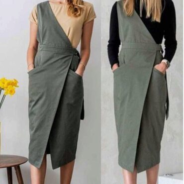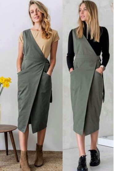 Этот отрезной по талии сарафан с прямой юбкой предназначен для ношения на футболку или на водолазку.