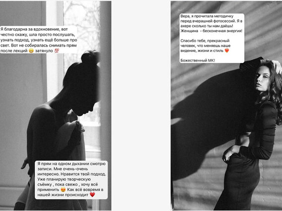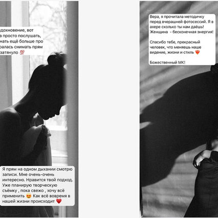 Наглядно показываю как я работаю с разными моделями, как добиваюсь естественного, живого позирования и как я направляю модель во время съёмки.