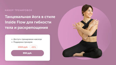 Тренировки Inside Flow Yoga заряжают энергией, развивают гибкость и пластичность тела, оздоравливают позвоночник, помогают мышцам оставаться упругими и эластичными без оборудования.