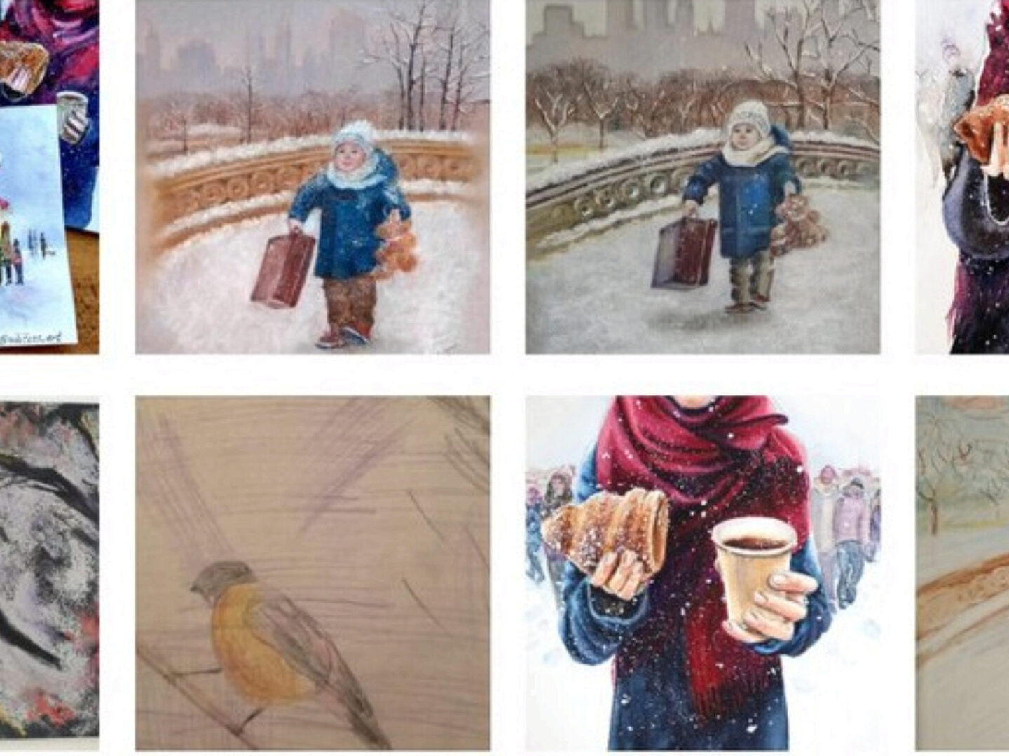 Рисуем сухой пастелью с Ириной Артамоновой портрет мальчика в полный рост на фоне заснеженного Нью-Йорка