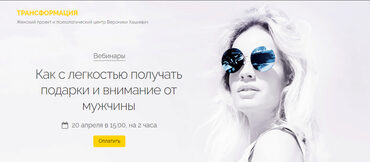 два марафона по выгодной цене 1. «Флирт, соблазн и обольщение. Или как быть женщиной мечты» 9900р. Тебя ждут 5 практических уроков и ошеломительных заданий, которые начнут сводить мужчин с ума! Ты узнаешь о женских хитростях, пренебрегать которыми это просто преступление. Мы заложим фундамент к