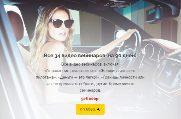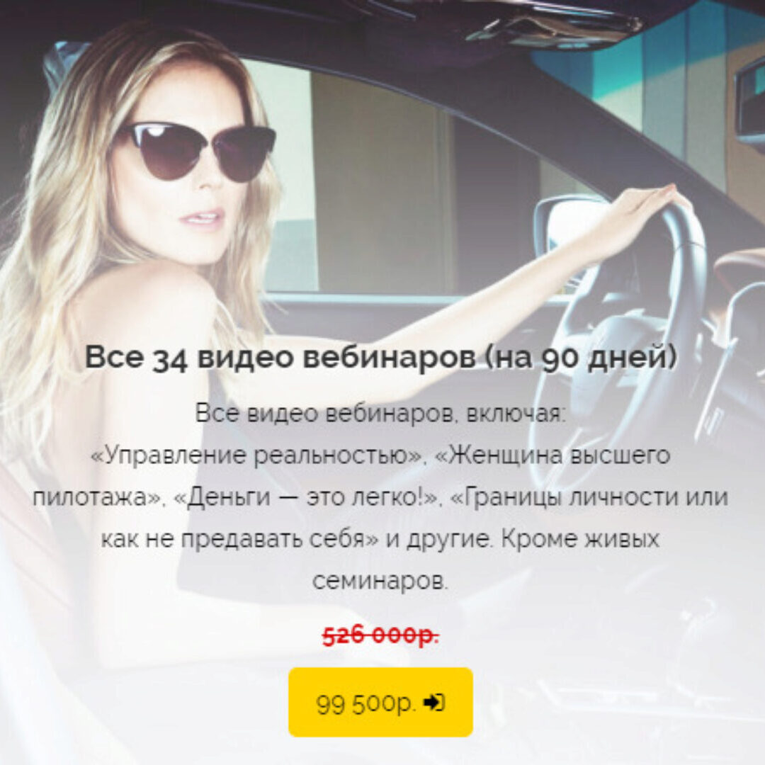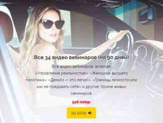Входят такие вебинары: 1) Искусство общения с мужчиной в период первых свиданий, первого секса и поведения после него 2) Карта желаний. Практика манифеста 3) Границы личности или как не предавать себя 4) Материнский инстинкт или тревога? Идеальная и плохая мать 5) Новая Я 6) Воспитание детей