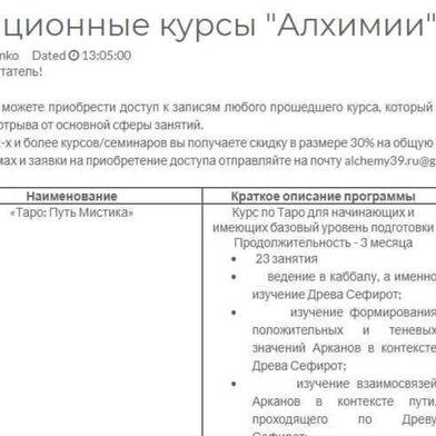 Приобретая данный мастер класс Вы получаете: возможность ежегодного изготовления денежного талисмана под определенную задачу открываете и усиливаете свой денежный потенциал познакомитесь с нумерологической магией чисел Уровень подготовки: от новичка до мастера В состав пакета вошли: Вводный день