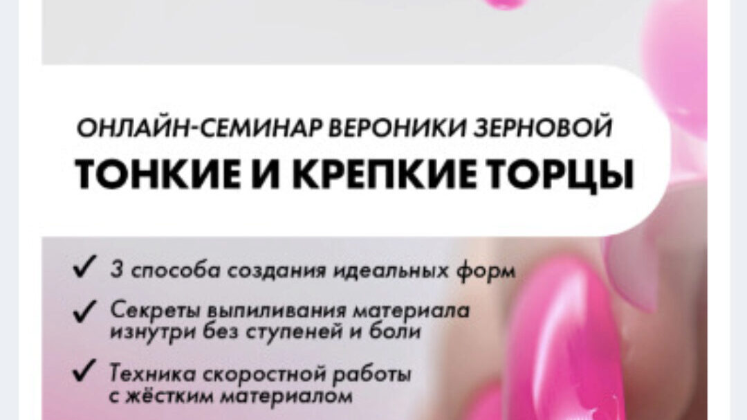 Вероника Зернова «Тонкие и крепкие торцы» — ParisNail School
