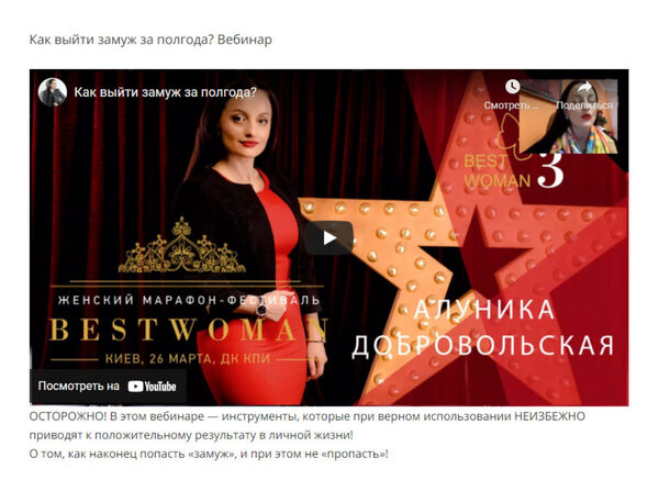 Отзывы о курсе «Как выйти замуж за полгода» от Алуники Добровольской
