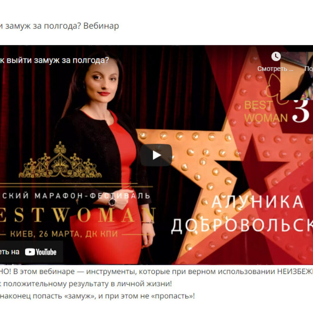 Алуника Добровольская «Как выйти замуж за полгода (Видео+Транскрибация)»