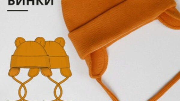 Выкройка шапки малого объема. Верхняя часть шапки округлой формы с декоративными ушками. У шапки широкий отворот и ушки с завязками. Шапка на подкладке.