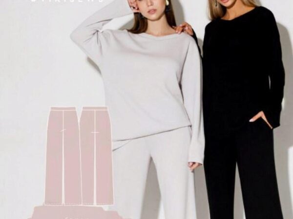 Выкройка мягких, комфортных, свободных, ниспадающих брюк прямого силуэта. В боковых швах выполнены карманы. Притачной пояс-обтачка со вставленной внутрь резинкой. Для модели подойдет пластичный вязаный трикотаж. Модель Валерия: ОГ 84, ОТ 64, ОБ 97, рост 168. Выбранный размер: M. Модель Настя: ОГ