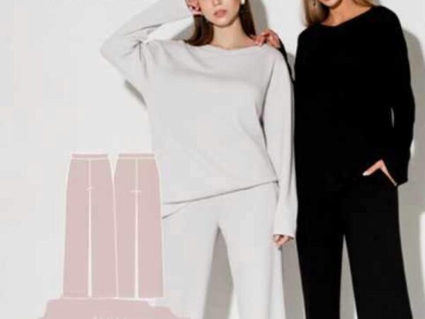 Выкройка мягких, комфортных, свободных, ниспадающих брюк прямого силуэта. В боковых швах выполнены карманы. Притачной пояс-обтачка со вставленной внутрь резинкой. Для модели подойдет пластичный вязаный трикотаж. Для пошива брюк подойдут трикотажные вязаные полотна, обладающие следующими свойствами: