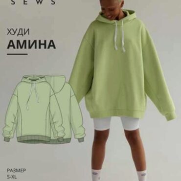 Выкройка худи большого объема, прямого силуэта, с капюшоном, оверсайз. Деталь переда имеет вертикальные подрезы, в которых обработаны внутренние карманы. Линия плеч спущенная. Рукав рубашечного покроя, содержит два декоративных шва, по низу рукава притачная манжета. Капюшон объемный, со швом, по