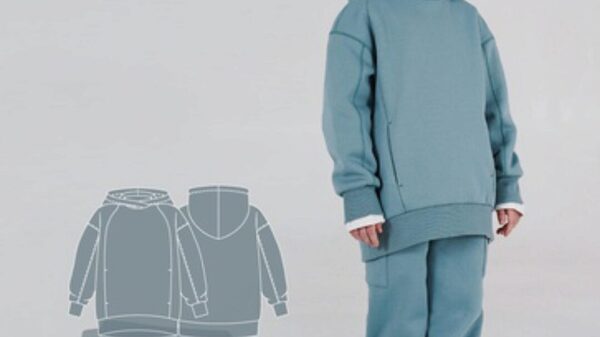 Выкройка худи большого объема, прямого силуэта, с капюшоном, оверсайз. Деталь переда имеет вертикальные подрезы, в которых обработаны внутренние карманы. Линия плеч спущенная. Рукав рубашечного покроя, содержит два декоративных шва, по низу рукава притачная манжета. Капюшон объемный, со швом, по