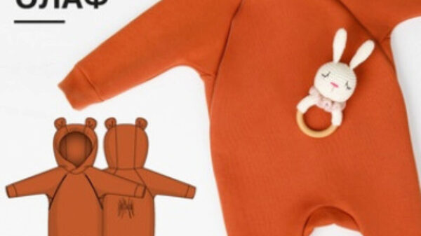 Изделие с мыском и следком, образующими ступню, по низу на спинке фиксируется настроченной резинкой. Капюшон на подкладке оформлен декоративными ушками. По краю капюшона кулиска с эластичной тесьмой-резинкой. Застежка капюшона на запах на пробивные кнопки.