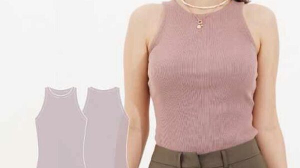Выкройка топа малого объема, прилегающего силуэта. У топа горловина округлой формы, обработанная бейкой. Топ без рукавов, американская пройма обработана обтачкой. Длина до линии бедер. Для пошива топа подойдут трикотажные полотна, которые обладают следующими свойствами: - мягкие, растяжимые и