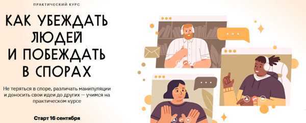 За 5 занятий вы научитесь Разрабатывать тактику диалога; Подбирать убедительные и логически обоснованные аргументы; Грамотно реагировать на критику и манипуляции; Видеть сильные и слабые стороны в доводах оппонента; Говорить так, чтобы к вашей точке зрения всегда прислушивались. Программа курса