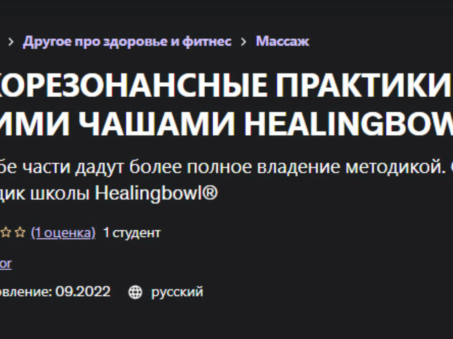 Часть 1 из 2. Обе части дадут более полное владение методикой. Основы всех курсов и методик школы Healingbowl®