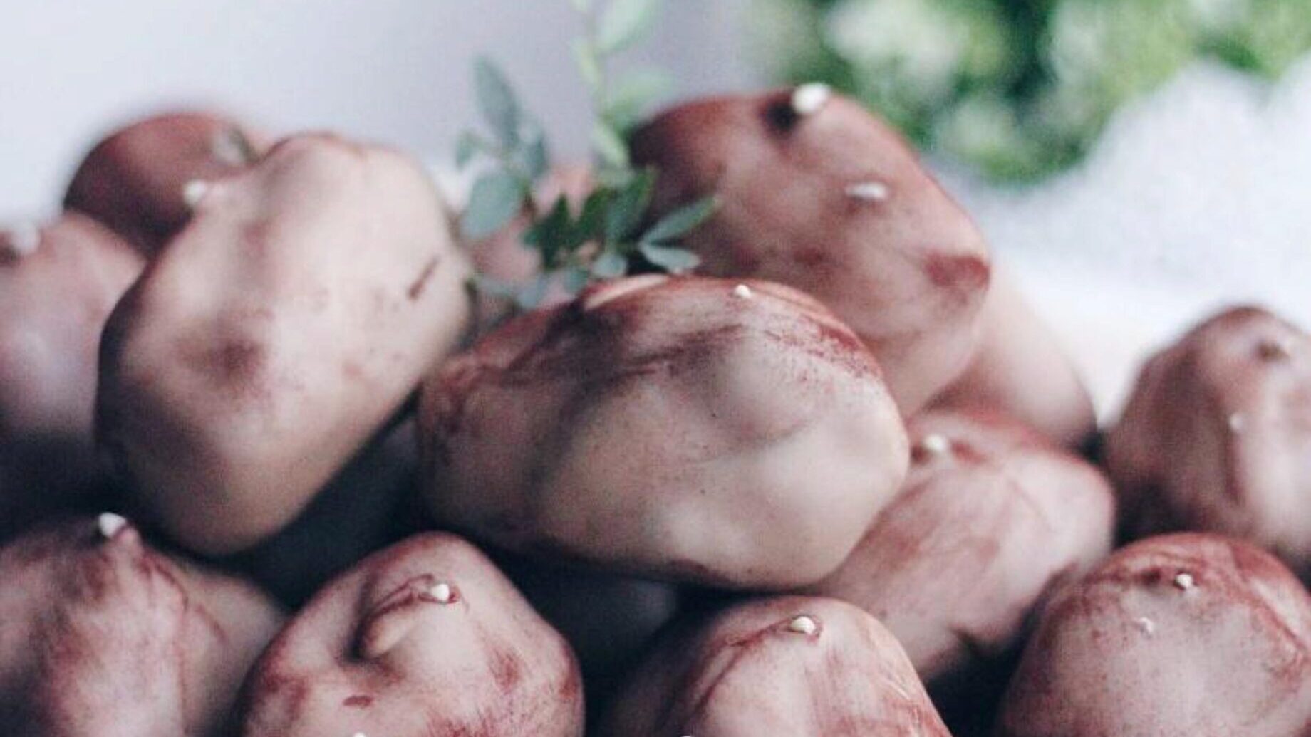 Бисквитное пирожное «Картошка» на основе шоколадного бисквита нежнейшей текстуры, снаружи - бельгийский шоколад (белый/молочный). Рецепт в виде технологической карты в текстовом формате pdf и видео-инструкции по приготовлению.