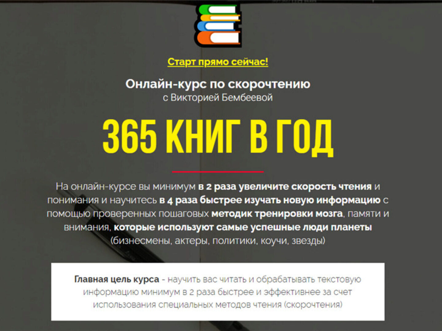 Виктория Бембеева «Онлайн-курс по скорочтению. 365 книг в год. Тариф - Могу сам»