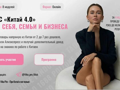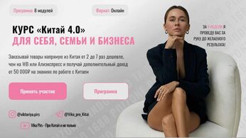 КУРС «Китай 4.0» ДЛЯ СЕБЯ, СЕМЬИ И БИЗНЕСА Это онлайн-курс, построенный на практике и быстро применимой информации. Заказывай не только для себя, но и для других - и зарабатывай на этом без вложений 1. Освоите 5 топовых китайских площадок 2. Узнаете все тонкости работы с Китаем 3. Получите