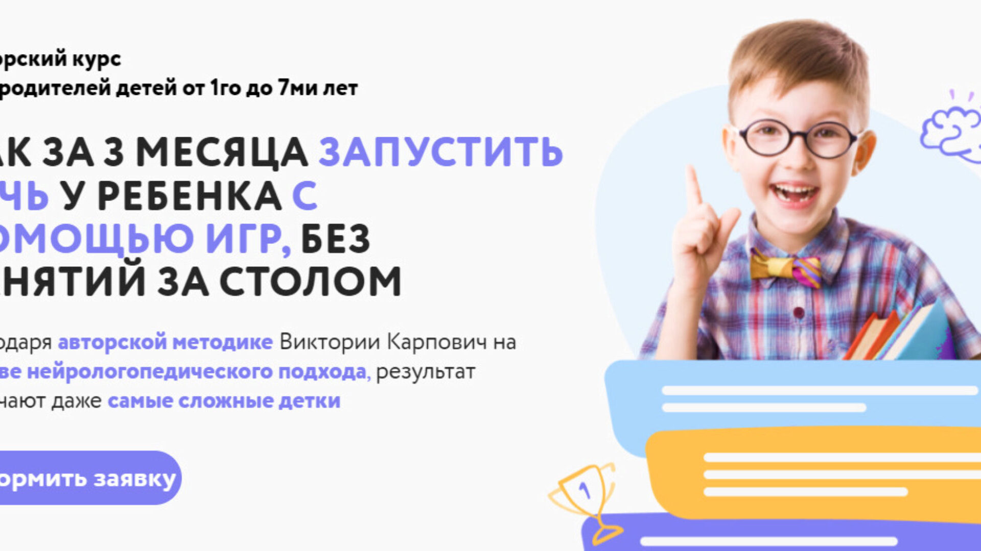 Виктория Карпович «Как за три месяца запустить речь у ребенка с помощью игр. Тариф Основной»