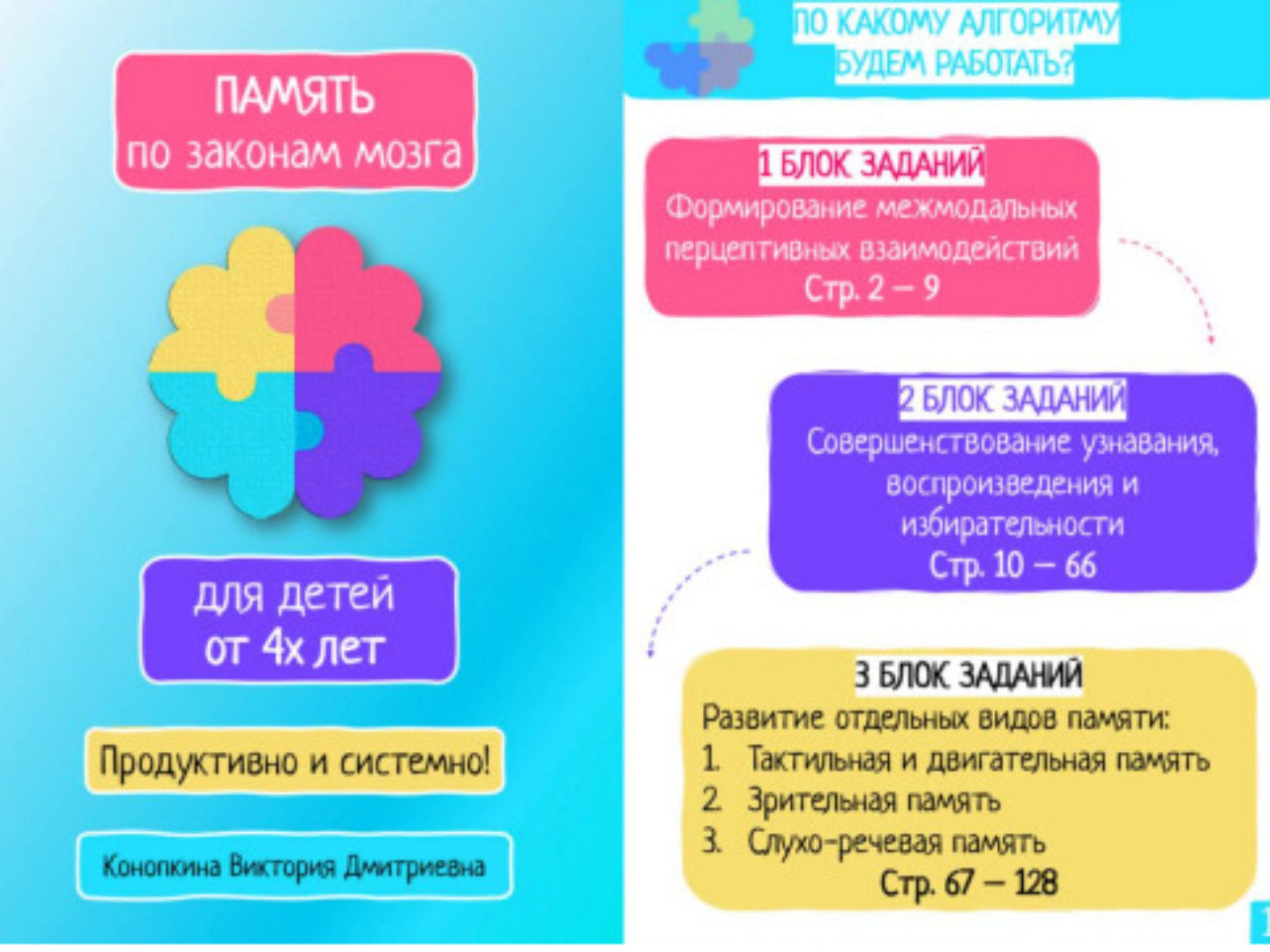 Комплекс выстроен в определенной логике. Обычно пособия содержат перечень заданий на развитие отдельных видов памяти. А в данном комплексе мы начинаем с отработки верного перевода информации с языка одной модальности на язык другой - а это залог успешного развития памяти!
