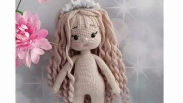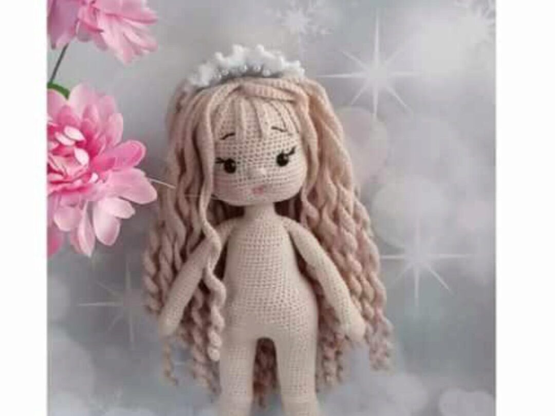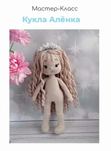 Куколка игровая. Примерный рост куклы 29см. Ручки и ножки ввязываются в процессе вязания, голова вяжется единой деталью с телом, ушки вывязываются на голове. Пришивается только парик. Кукла не стоит, сидит с опорой. Мк имеет средний уровень сложности, для новичков не подходит. Мк содержит:
