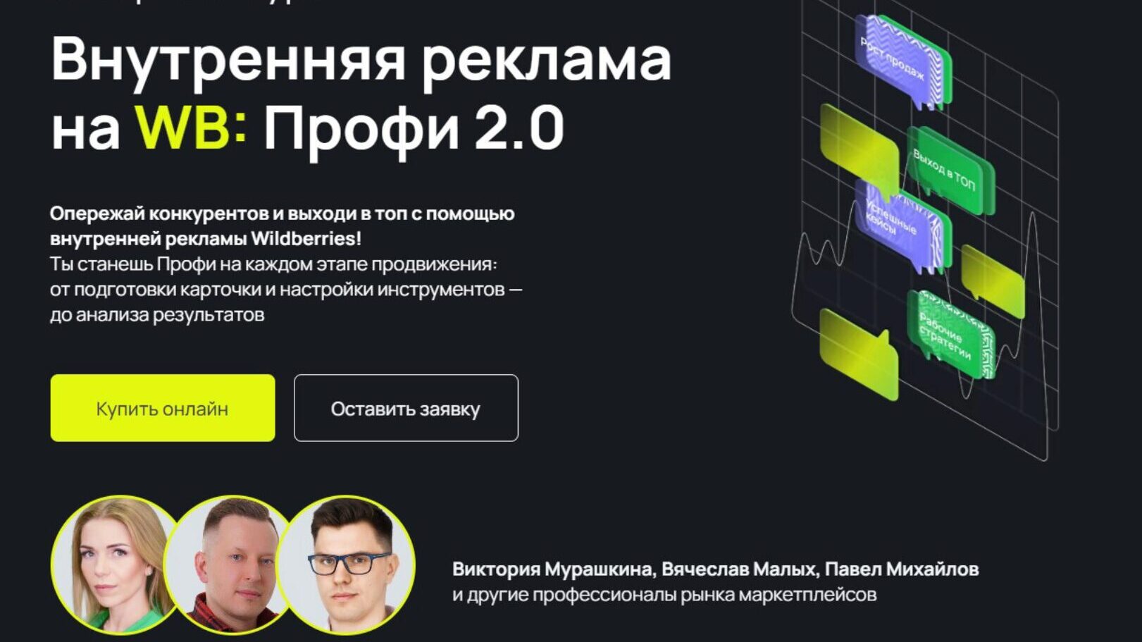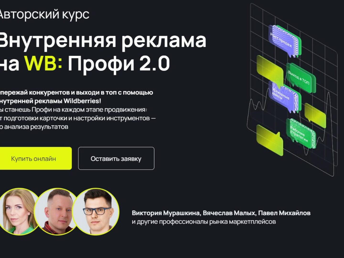 Отзывы о курсе «Внутренняя реклама на Wildberries: Профи 2.0. Тариф Профи. С куратором» от Виктории Мурашкиной, Вячеслава Малых, Павла Михайлова