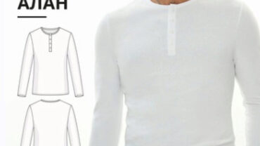 Выкройка мужской футболки большого объема, прямого силуэта. Линия плеча расширена, вырез горловины круглый, обработан бейкой. Рукав втачной, длиной до локтя. Длина футболки ниже линии бедер.