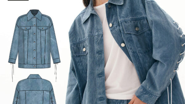 Выкройка жакета большого объема, прямого силуэта, на подкладке. Линия плеч расширена, поддерживается высокими плечевыми накладками. Спинка со средним швом и шлицей. На полочках прорезные карманы с клапаном, карманы с листочкой с настрочными концами. На правой полочке выше линии талии карман с