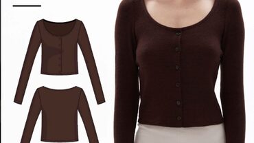 Выкройка кардигана большого объема, прямого силуэта. Вырез горловины и борта обработан планкой. Линия плеча спущенная. Рукав рубашечный, длинный, большого объема. Застежка на обметанные петли и пуговицы. Длина кардигана ниже линии бедер. Для пошива кардигана подойдут мягкие, растяжимые, умеренно