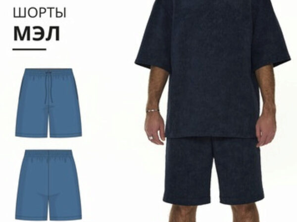 Выкройка мужских шорт умеренного объема, прямого силуэта. В боковых швах шорт расположены карманы. Пояс шорт цельнокроеный на резинке с обметанными петлями, через которые вставлен декоративный шнур. Длина шорт до колена. Для пошива шорт подойдут трикотажные полотна, которые обладают следующими