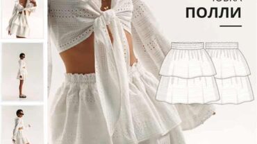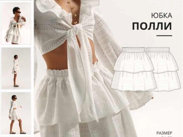 Выкройка юбки малого объема, легкого трапециевидного силуэта. Силуэт юбки образуется за счет косого кроя. На притачном поясе-резинке. В юбке использована люксовая обработка без использования оверлока: французским и московским швами. Длина изделия выше щиколотки.