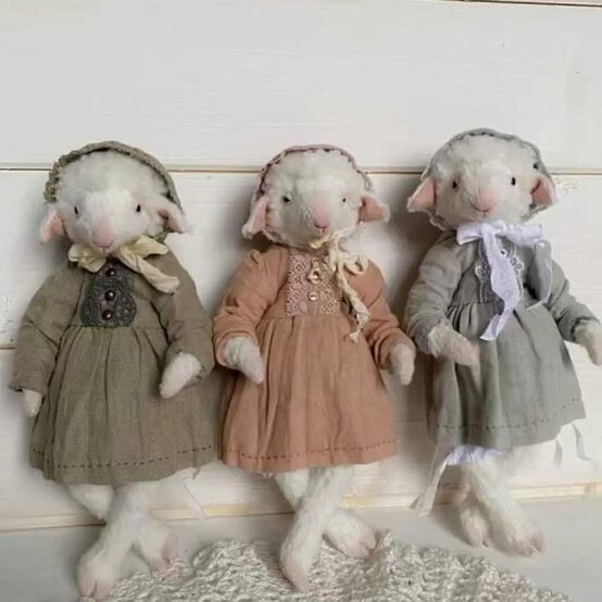 Вас ждут две авторские выкройки - овечки и барашка, оформление и тонировка мордочки, «живые веки», уроки по набивке игрушки опилками, также мы сошьём чепчик, панталоны и платье