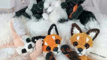 У лисиков ввязываются лапки с хвостиком, голова поворотная (можно по желанию пришить), пришиваются только ушки.