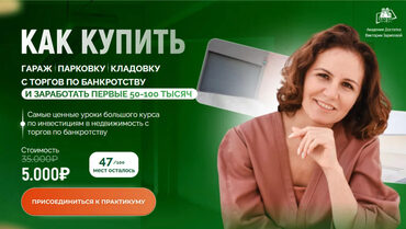 Если вы готовы узнать о том, с чего начать работу на торгах по банкротству, получить пошаговый план покупки объекта и заработать первые 50-100 тысяч - жду вас на практикуме.