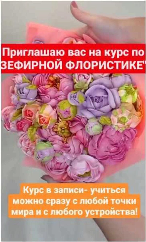 Зефирная флористика (обновлённый курс 2023) КУРС ПОДХОДИТ ДЛЯ НОВИЧКОВ с «0». КУРС УЖЕ В ЗАПИСИ и ВИДЕО-УРОКИ будут пополняться! Те, кто приобретает сейчас – получит все обновления бесплатно! Программа обучения очень насыщенная и очень подробная: Это курс 3 в 1! ЗЕФИРНАЯ ФЛОРИСТИКА, КРЕМОВАЯ