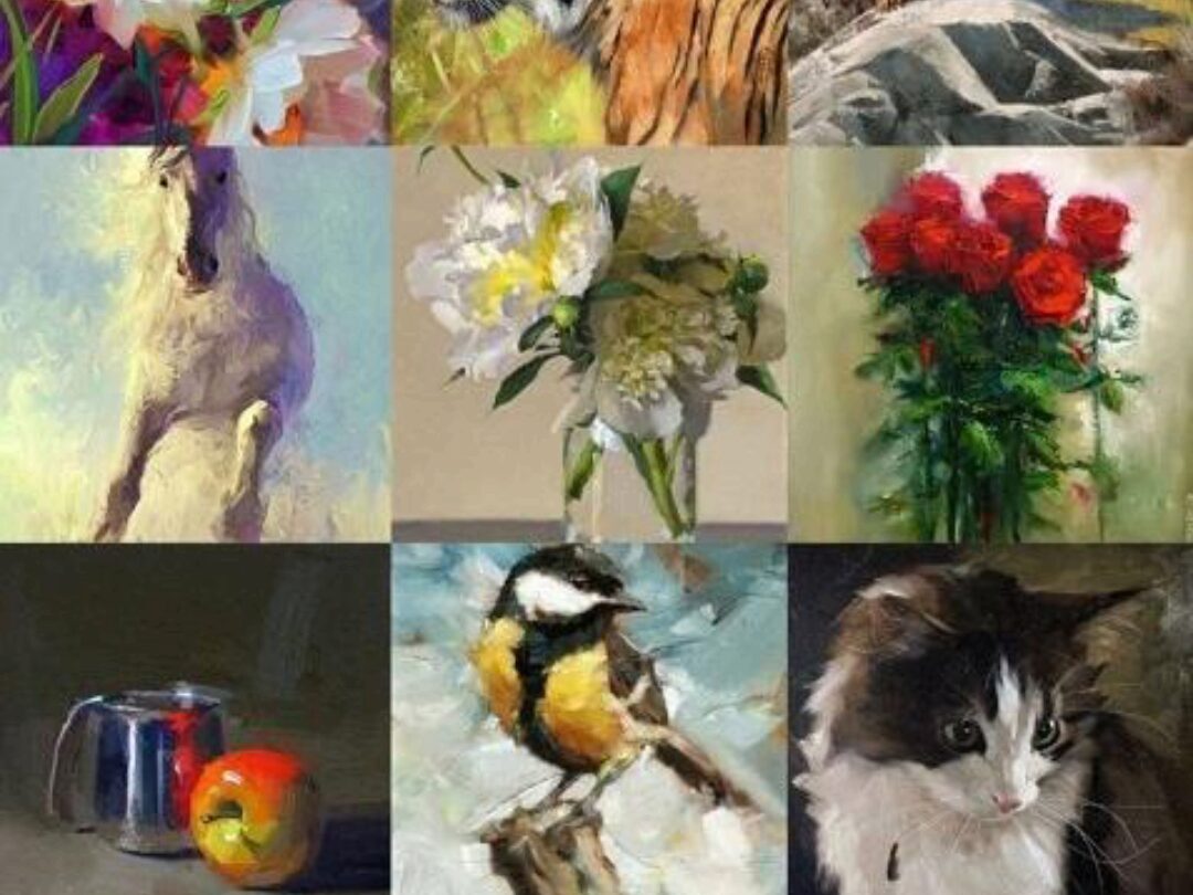 Курс-конкурс «Основы масляной живописи (анималистика)» 9 уроков по 2 часа, 9 картин! Идеальный переходный курс для тех, кто хочет научиться портрету. Вся БАЗА для масляной живописи! На курсе я научу Вас правильно смешивать цвета, компоновать рисунок и быстро писать сюжет. Разберёмся, что такое