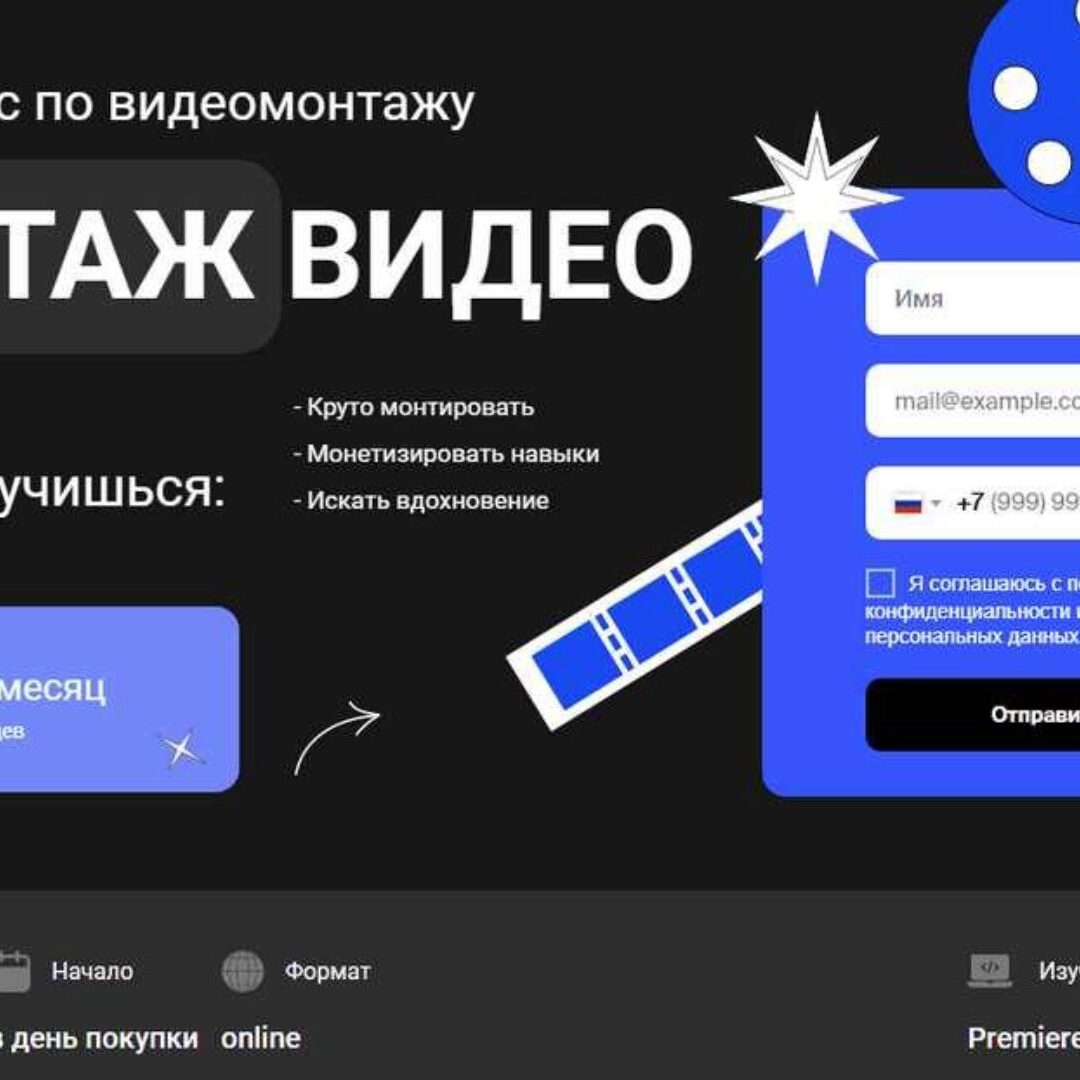 Старт курса — 7 апреля 48 видео-лекций от простого к сложному Практические задания, чтобы закрепить материал Чат студентов для обмена опытом На курсе тебя ждёт полный разбор всех принципов создания динамичного монтажа. Программа курса: 7 онлайн-лекций для новичков, чтобы влиться в процесс создания