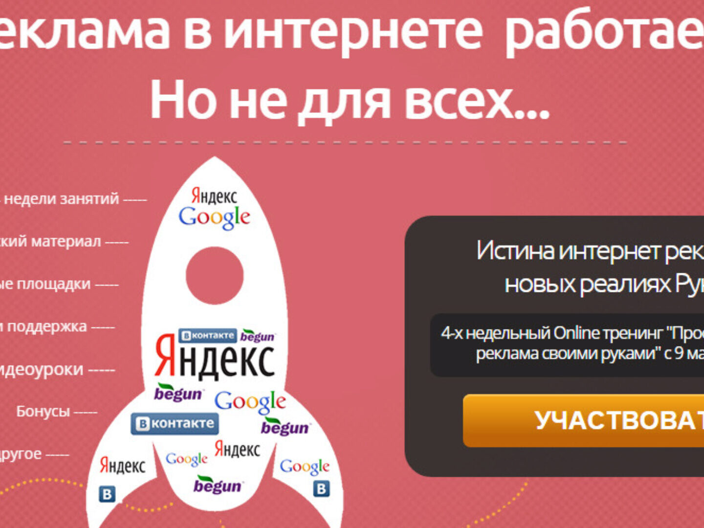 Тренинг начнется 31 марта и будет длиться 4 недели, его цель - максимальная эффективность. Мы подробно разберем рекламу, начиная с азов и заканчивая ее оптимизацией. Все это с примерами, домашними заданиями, нужными сервисами, ссылками и т.п. Вам не придется искать что-то самостоятельно, мы все сделали за вас!
