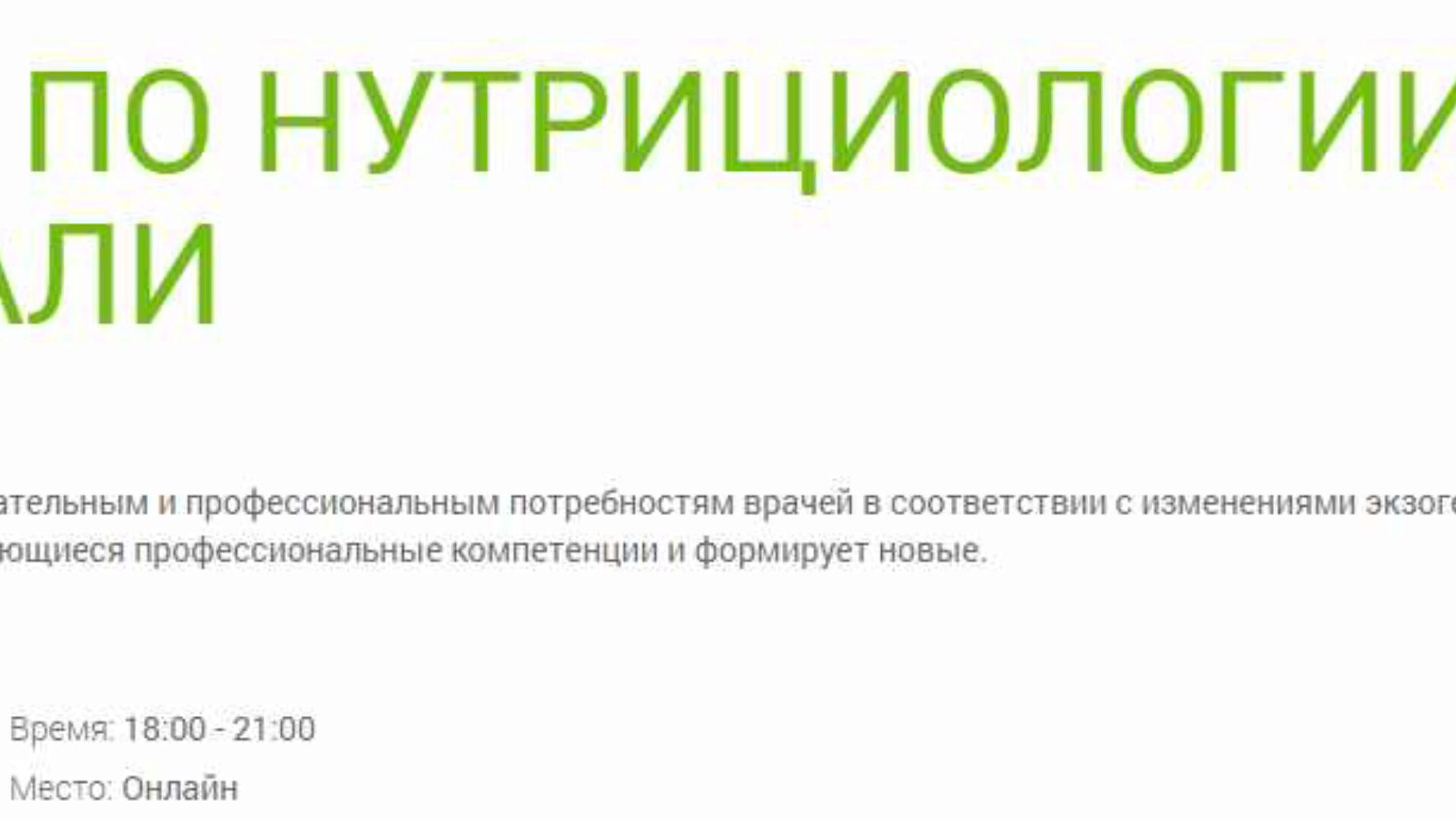 «Питание и здоровье. Применение микронутриентов и других природных соединений в профилактике и оздоровлении». Курс вошел в программу дополнительного профессионального образования.