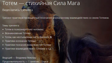 Тренинг-практикум посвящённый осознанию и осознанному взаимодействию со своим Тотемом.