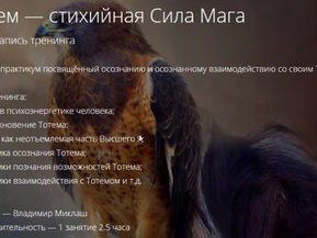 Вебинар, который ждали очень многие, распрашивая меня о том, когда же наконец удастся познакомиться с родным существом из подсознания, которое является источником скрытых возможностей и талантов. Семинар «Твой Тотем» - это возможность погрузившись в состояние естественного транса познакомиться со