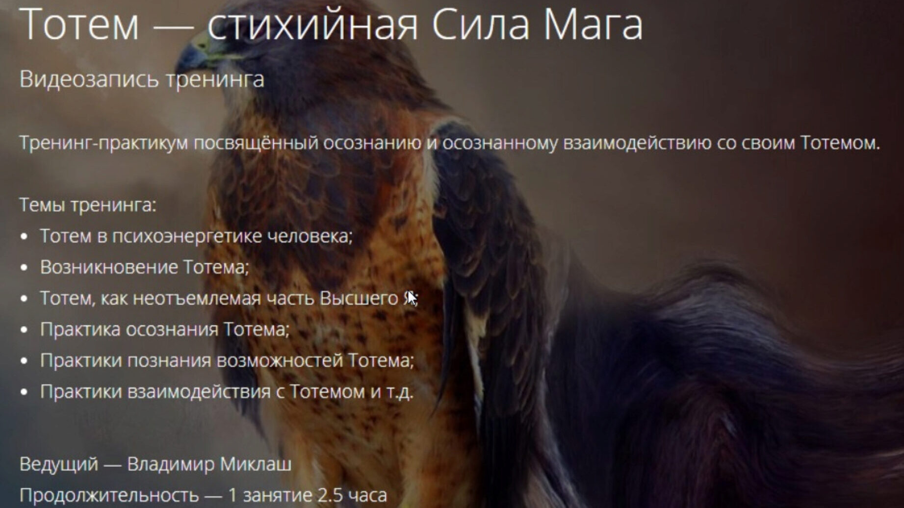 Отзывы о курсе «Тотем-Стихийная сила мага» от Владимира Миклаша